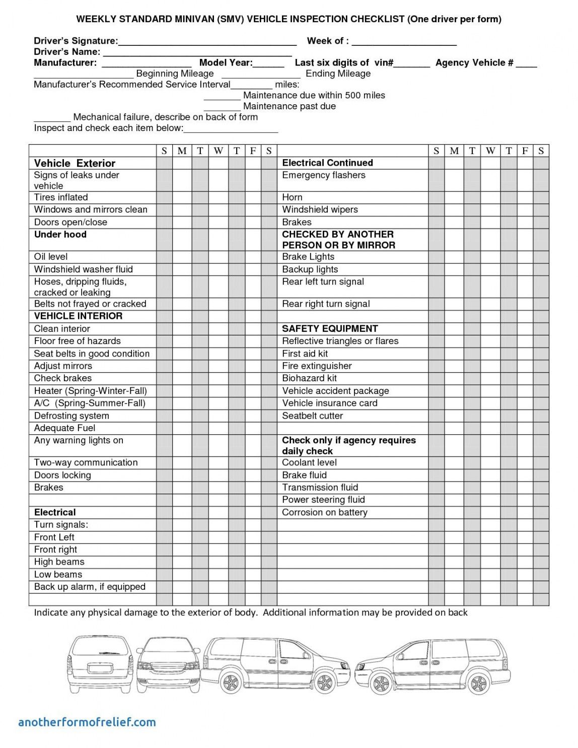 Blank Maintenance Checklist